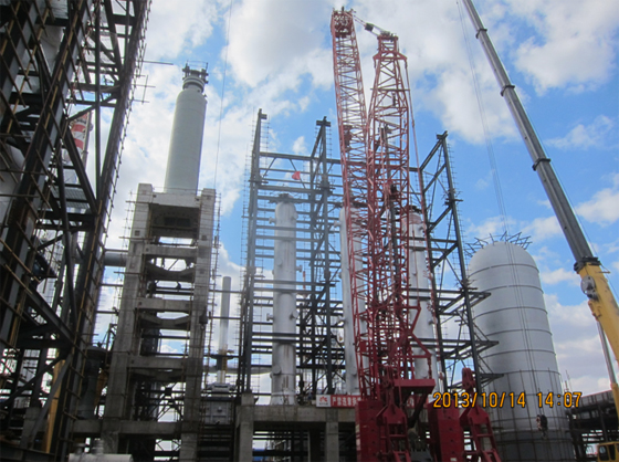據(jù)悉,此懸浮床反應(yīng)器高32米,重195噸,主吊采用400噸履帶式起重機,輔吊采用200噸汽車吊和130噸汽車吊聯(lián)合溜尾。此次吊裝在對吊裝總重及吊車性能等進(jìn)行了周密核算,實現(xiàn)了項目大型吊裝資源利用的最優(yōu)化,真正做到了成本最小化、利益最大化。