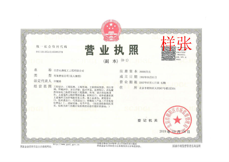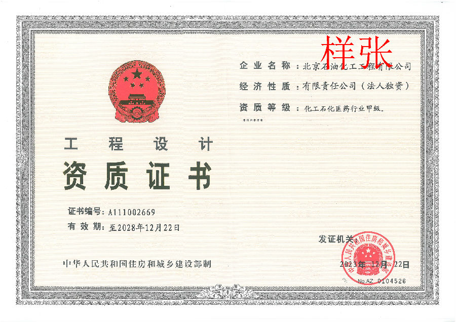 工程設(shè)計(jì)資質(zhì)證書(化工石化醫(yī)藥行業(yè)甲級)