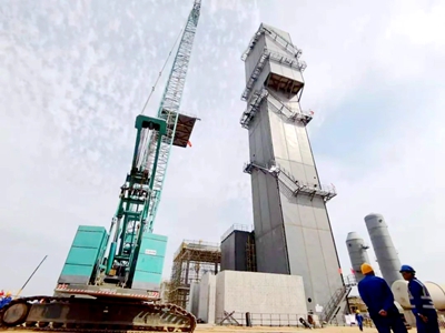 6月28日,由公司總承包的榆神能化50萬噸/年煤基乙醇項目,8萬等級空分裝置分餾塔系統主、副冷箱順利完成封頂,比“百日攻堅大會戰”節點提前22天完成。