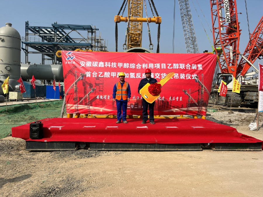 3月5日,由北京石油化工工程有限公司(簡稱:北油工程)EPC總承包的安徽碳鑫科技有限公司(簡稱:碳鑫科技)甲醇綜合利用項目乙醇聯(lián)合裝置首臺乙酸甲酯加氫反應(yīng)器順利吊裝。