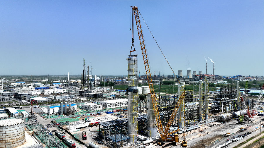乙醇精制塔上塔的順利封頂,吹響了大件吊裝沖鋒的號角,向4月底大件吊裝全面收官的目標(biāo)邁出堅實的一步。(通訊員/黃耀輝 攝/王超)